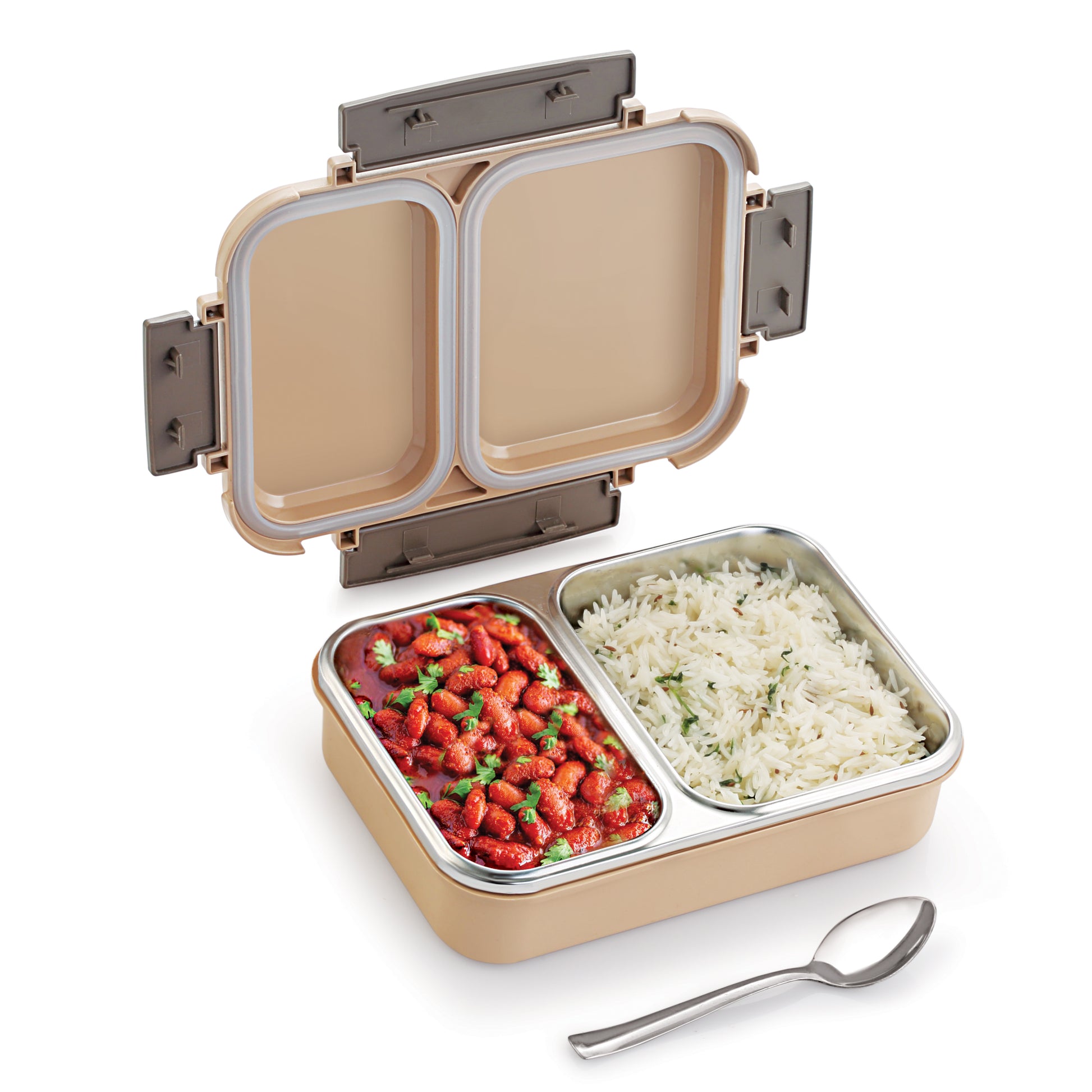 - 2 Separate Compartments with Locking Lid: The Smart Meal lunch box features two distinct compartments to keep different food items separate—ideal for packing a main dish and side dishes. The secure locking lid prevents mixing, spills, or leaks. Spill & Leak-Proof Design: Engineered to prevent leaks and spills, this lunch box securely contains your meals, ensuring a mess-free experience.